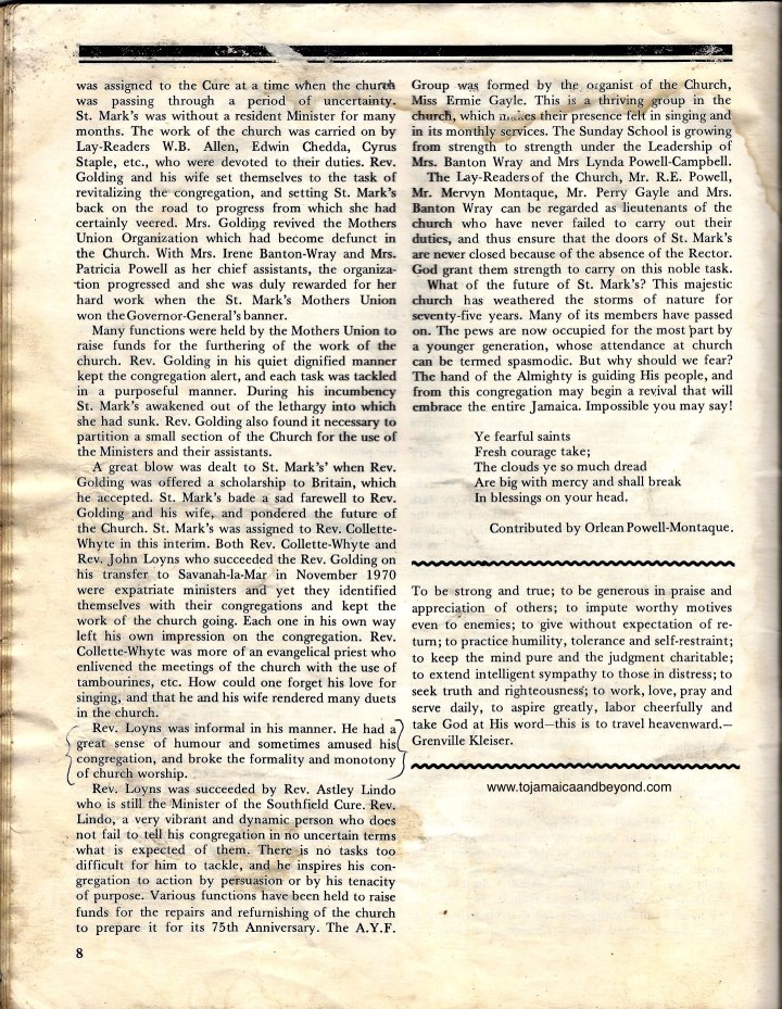 Like a bloodhound, my hands – or should that be paws? – sifted frantically through all the clothing and other stuff, trying to reach all around and get to the very bottom of the barrel. In fact, one of ‘Cecil’s barrels’ was precisely where I found the 1978 Saint Mark’s Church anniversary brochure, posted on this blog.
