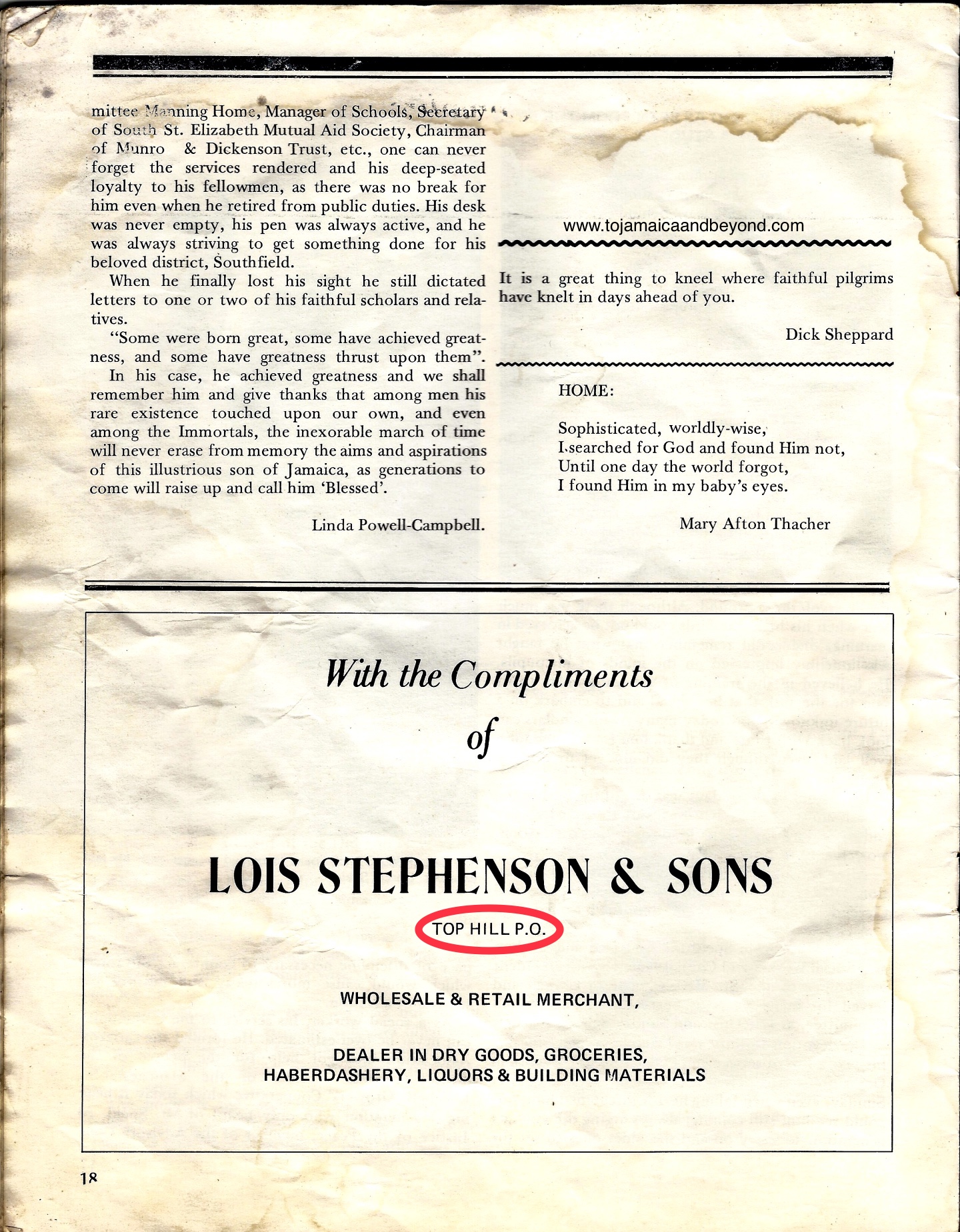 Before we move on, I just want to give you an interesting piece of information. In the second photograph above, there is an advert that mentions Top Hill in Southfield, Saint Elizabeth, Jamaica. My dad and his brother Colin were raised in this area, but so were the parents of a very successful man. But who was this man?